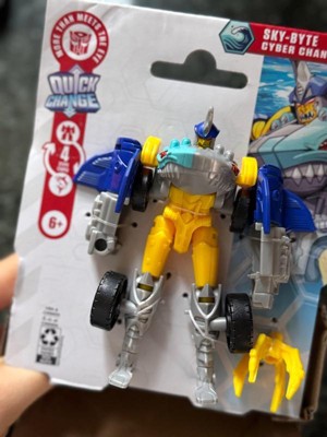 - 2-IN-1 CYBER CHANGERS SKY-BYTE FIGURE: This articulated Transformers action figure changes from robot toy to shark car toy in 4 simple steps