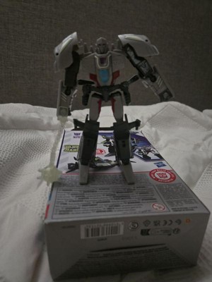 [This review was collected as part of a promotion.] This is a fun transformer toy. The package is eye-catching, it is easy to transform into an airplane toy. My kids enjoy playing with it for quite a while. It is also glow in the dark, and my kids like to put it on the bed table. Personally I think the toy is a bit small, and they should make it a bit bigger.