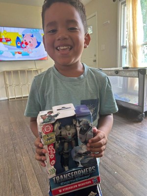 [This review was collected as part of a promotion.] My nephew was so happy when he received the new transformers Earth spark cyberglow Megatron. It's his new favorite toy and he takes it with him everywhere and the glow in the dark weapon is a cool added feature.