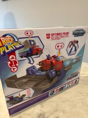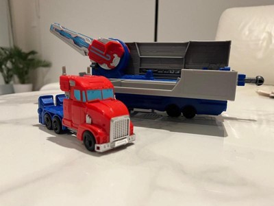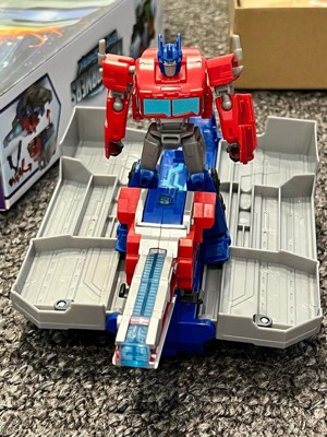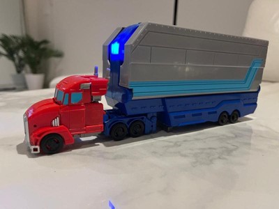 - 2-IN-1 OPTIMUS PRIME FIGURE: 5-inch (12.5 cm) Transformers action figure changes from robot toy to truck toy in 13 steps. In robot mode, figure can sit on the battle station. In truck mode, kids can attach the trailer and roll out!
