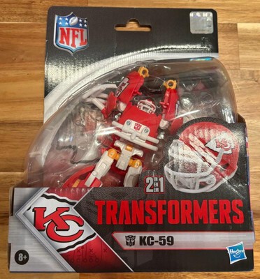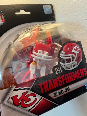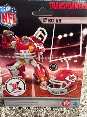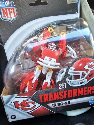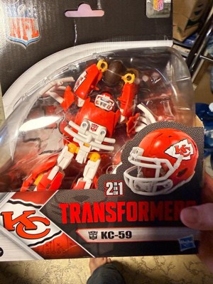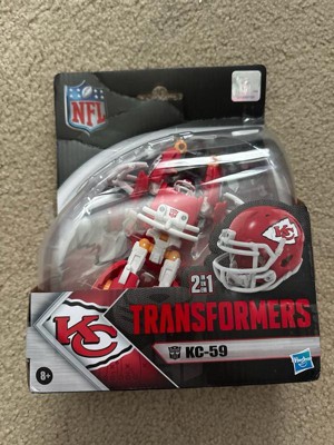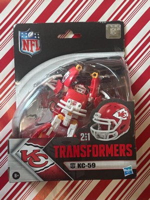 - OFFICIALLY LICENSED NFL TRANSFORMERS BOT: This Transformers figure, KC-59, represents the Kansas City Chiefs and features team colors and themed accessories