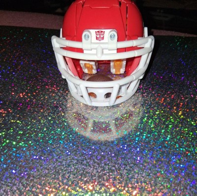 - CONVERTS FROM ROBOT TO FOOTBALL HELMET: Change the Transformers action figure from robot toy mode to helmet mode in 23 steps. Figure is 5.5 inches (14 cm) tall in robot mode