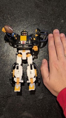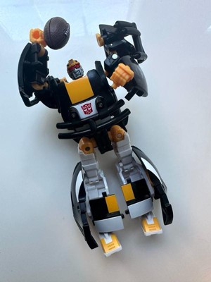 - CONVERTS FROM ROBOT TO FOOTBALL HELMET: Change the Transformers action figure from robot toy mode to helmet mode in 23 steps. Figure is 5.5 inches (14 cm) tall in robot mode