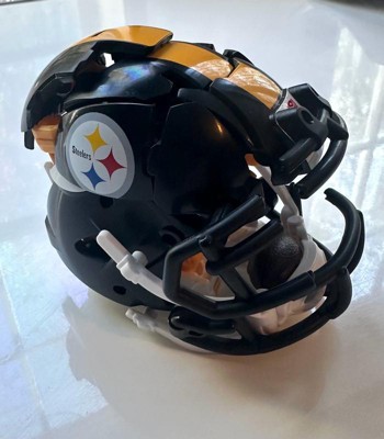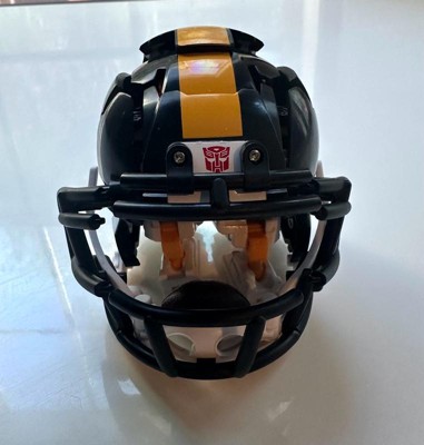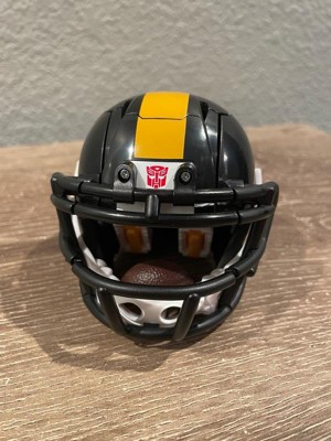 Experience the epic combo of Transformers robots and the NFL with the Transformers Pittsburgh Steelers Steelsmash toy! The 5.5-inch (14 cm) figure converts from robot action figure to football helmet mode in 23 steps. With intricate poseability and accessories like a mini football the figure can hold and a mini helmet that the robot figure can wear, this unique collaborative action figure makes an awesome addition to any Transformers or NFL collection. Look for more Transformers collectible toys (sold separately, subject to availability) featuring favorite characters like Optimus Prime, Bumblebee, Megatron, and more to create a lineup that is — More Than Meets the Eye.