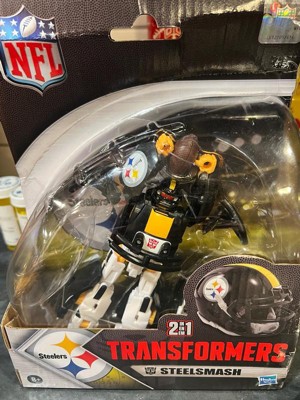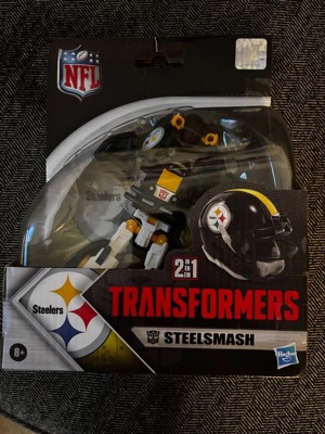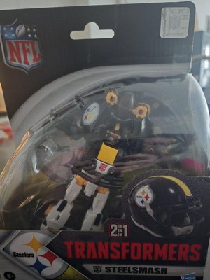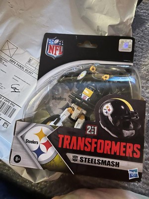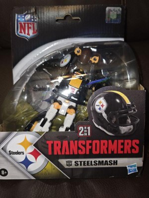 - OFFICIALLY LICENSED NFL TRANSFORMERS BOT: This Transformers figure, Steelsmash, represents the Pittsburgh Steelers and features team colors and themed accessories