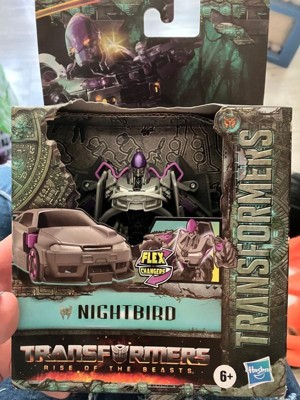 Nightbird, the fierce Terrorcon warrior, converts and changes modes thanks to the power of Energon! Flex Changers figures are inspired by characters from the new Transformers: Rise of the Beasts movie! Flexible figures convert from robot mode to alternate mode and vice versa when folded (sold separately, while stocks last).