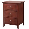 Dimensions of 25'H X 19'W X 15'D fit wellThree spacious drawers for convenient storageConstructed for durability to withstand daily useAssembly required for a customized setupWarm cherry finish enhances any room decor