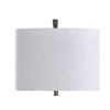 Defining transitional style, the Malta table lamp has a brushed black textured base and a heathered off white shade. The hammered texture of the base is enhanced by the distressed sage and gold tones in the finish. Add this bold table lamp to a family room or a living room with contemporary decor. This piece exemplifies superior product design and great styling. It will pair well with transitional styling. Suitable for residential use in a dry location. Due to lighting and monitor differences, actual colors and finishes may vary slightly from what appears online