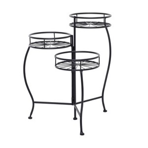 Add a bright and vibrant visual delight within your outdoor patios and garden areas as you decorate your corners with this foldable black plant stand. This item ships in 1 carton. Suitable for indoor and outdoor use. This item ships fully assembled in one piece. Maximum weight limit is 30 lbs. This is a single black colored plant holder. Transitional style.