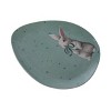 Transpac Ceramic Egg Shaped Platter with Mint Julep Bunny Multicolored for Easter Serving and Entertaining
