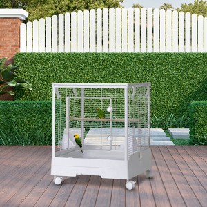 40 Inch Small Bird CageTurn your birds habitat into a playground of joy for your feathered pets with our 3 in 1 bird cage – where open top doors meet easy to clean tray, designed to keep them safe while you enjoy convenient maintenance!