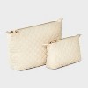 Keep your essentials handy during travel by packing them in the Travel Bag Pouch System from Universal Thread™. This pack of two pouches comes with two different sizes and prints to give you two smart options for carrying cosmetics and other items. Made of canvas, these travel bag pouches have zipper closures to help keep the contents neatly contained but still close at hand.