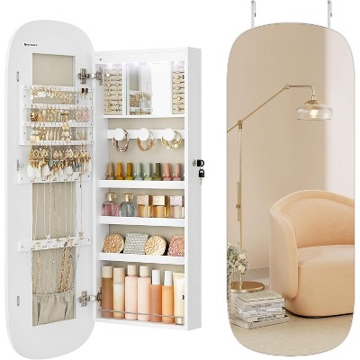 【COMPACT AND TRAVEL-READY】Travel in style with our portable jewelry box, a compact 4.1"D x 8"W x 2.4"H size that effortlessly fits into your bag or suitcase. Complete with an independent mirror for quick makeup checks and smooth zippers for easy access