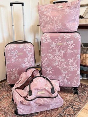 [This review was collected as part of a promotion.] I was SO excited to use my new luggage on a trip and was shocked at how much space is provided in this 7 piece set. I ended up taking the smaller carry on size with the matching bag and it really does fit everything I need. Moving around across carpet and tile it’s seamless and I was highly impressed at the quality of it. The color pattern is not distracting and really cute. The pink is like a blush pink. Overall really impressed with how high quality these products are and that there are so many pieces that comes with it. I am in my mid 30’s and still find it to be really stylish and well worth it for how many pieces come with it. No scratches or stains after using it I did remove the protective film prior to my trip too. Overall SO happy with this and would recommend if you’re looking for a new luggage set.