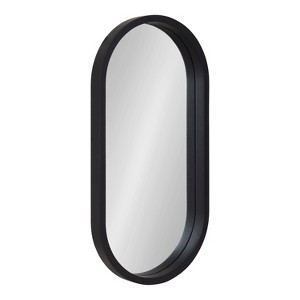 The Travis collection of sophisticated wall mirrors offers your home a new take on modern simplicity. Inspired by the bold geometry of contemporary design, the Travis wall mirror features a capsule-like, oval shape, produced with clean, sophisticated lines that arch at both ends. It's constructed with a sturdy, yet resilient, wooden material, with a sleek black finish for the ultimate statement piece. The overall dimensions of this wall mirror are 12 inches wide by 24 inches high, making it the perfect size to stand out in multiples of two or three in a beautiful space. Or you can also hang it on its own to create an elegant focal point in any modern living room, entryway, or dining room. The Travis mirror also makes for a great bathroom mirror above a vanity or sink. Hanging a wall mirror expands your space by spreading light, thereby creating a more open, dimensional look. The Travis capsule mirror hangs both vertically and horizontally on your wall to blend into your decor seamlessly. Plus, it hangs in seconds with easy-to-use metal D-ring hangers attached to the back of the frame.