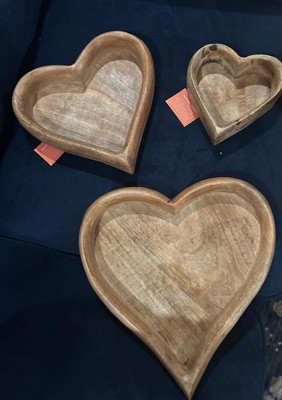 Trays for Bed, Coffee Table, or Home Decor - Charming Heart-Shaped Wooden Trays for Jewelries, Trinkets, or Vanities - Set of 3 - 14", 11", 7" Brown