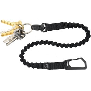 - STRETCH LANYARD KEYCHAIN: Keep your keys and wallets conveniently within reach with the Trayvax Stretch Link Lanyard Key Chain! Constructed with strong and sturdy bungee nylon with a durable melonite finish and industrial strength stitching, our heavy duty carabiner keychain stretches up to 25 inches, and features a quick release swivel so that your key ring, wallet, and tools are with you wherever you go