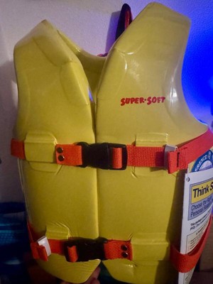 [This review was collected as part of a promotion.] This swim vest is not really soft. They are firm and run big. My son always wears a medium and this vest is big on him. The bright yellow is great because it’s well seen.