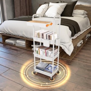 Tree City 4-Tier Rolling Cart with Drawer, Space-Saving Mobile Organizer for Kitchen- 330lbs Capacity White