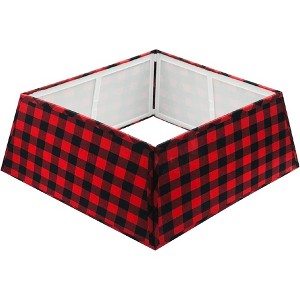 Product Name: Tree Nest Contemporary Square Canvas Christmas Tree Collar, Buffalo Plaid, Large, 27.6in
