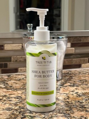 [This review was collected as part of a promotion.] The Tree to Tub Moisturizing Shea Butter Body Lotion has quickly become my favorite go-to for smooth, hydrated skin. Here's why: Pros: Deep Hydration: The shea butter provides intense moisture, leaving my skin feeling soft and nourished all day. Natural Ingredients: It's made with gentle, natural ingredients that are perfect for sensitive skin. Non-Greasy: The lotion absorbs quickly without leaving a greasy residue, making it ideal for daily use. Cons: Scent: The natural, mild scent is pleasant but might be too subtle for those who prefer stronger fragrances. Overall, this body lotion is a fantastic choice for anyone looking to keep their skin moisturized and healthy with natural ingredients. Highly recommend!