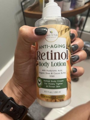 [This review was collected as part of a promotion.] I haven't been able to use this lotion quite long enough to know about it's tightening abilities, but my skin has loved the shea butter and hyaluronic acid formula. It's fragrance free. The retinol doesn't dry out or irritate my skin. It absorbs rather quickly and doesn't leave my skin feeling greasy or oily. The packaging seems to be almost entirely recyclable. My skin has been hydrated, more glowy, and softer with daily use. All in all, definitely a good body lotion! I only subtracted a star because I'm unsure if it actually helps with any tightening or firming, but I am continuing to use regardless!