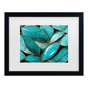 Trademark Fine Art - Treechild Turquoise Leafs Matted Framed Art