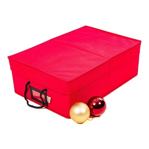 TreeKeeper 2 Tray Ornament Storage Box: Christmas Ornament Organizer with Dividers & Handles, Red Polyester