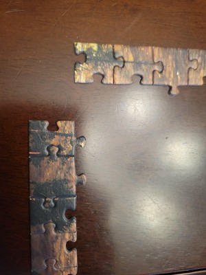 Touched every piece three times to verify corner and adjacent edge pieces were missing.