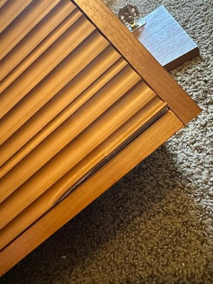 It’s made to last. The back support structure uses solid wood, and the cabinet itself is engineered wood wrapped in real Acacia veneer. You get the look and feel of natural wood with a smooth, matte finish that works in everyday spaces.