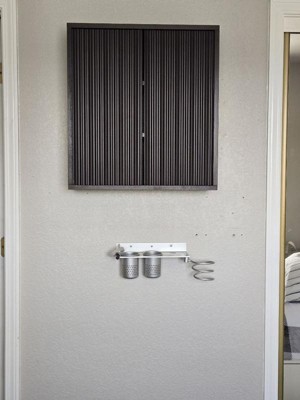 - Wall-Mounted Storage for Compact Bathrooms: Features two concealed compartments behind fluted doors with fixed shelving, ideal for stashing toiletries, hand towels, or small bathroom supplies out of sight.