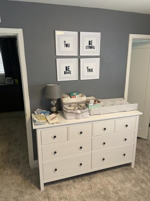 Love the neutral color scheme! This size is great for any room where you need a changing station for baby. Having the option to remove the dividers is a nice touch!