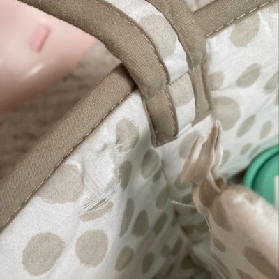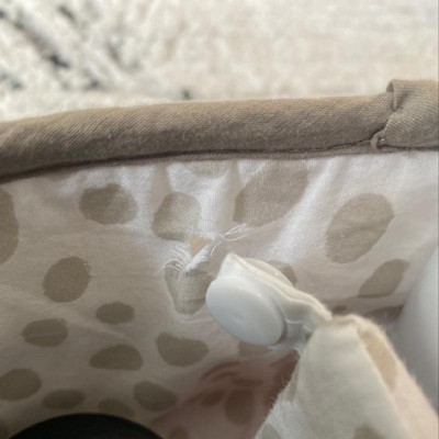 We received this caddy at our baby shower and used it to store diapers and other supplies we wanted to keep close at hand on the changing table. I initially was happy with the product. However, after just three months, it started to come apart. The caddy has a divider that snaps into place to create smaller compartments. The snaps separated from the fabric of the caddy, so the divider didn’t work anymore. That would be annoying but not terrible except that the snaps are small, round, and definitely pose a potential choking hazard. We ended up throwing the caddy away and replacing it with a basket that can’t pose the same risk. Very disappointed.