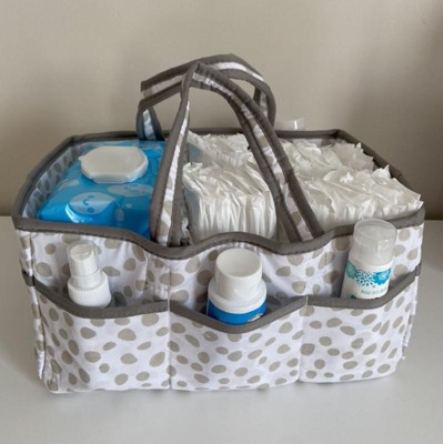 Perfect tote to store diapers, wipes and any other baby toiletries. Also perfect to use as a baby shower "gift bag" and fill with items.