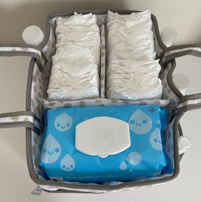 I love this contraption. It’s larger than I expected and was able to clear out almost an entire drawer of baby “stuff” that I use for diaper changes. The pockets are also a great addition for organizing things. It holds a ton of diapers, too!