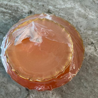 - Elegant Design: Trendables' set includes 80 plastic disposable wedding plates with an exquisite design, featuring a clear tint, gold rim, and a charming ruffled edge, known as petal plates.