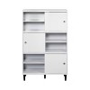 Features: Sliding Door(s), Anti-Tip Anchoring Hardware, Fixed Shelf/Shelves, Divided Storage, Open Shelves