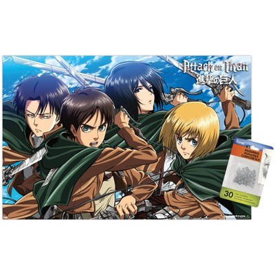 Trends International Attack on Titan: Season 2 - Attack Titan Unframed Wall Poster Print Clear Push Pins Bundle 14.725" x 22.375"