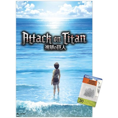 Trends International Attack on Titan: Season 3 - Key Art Unframed Wall Poster Print Clear Push Pins Bundle 14.725" x 22.375"