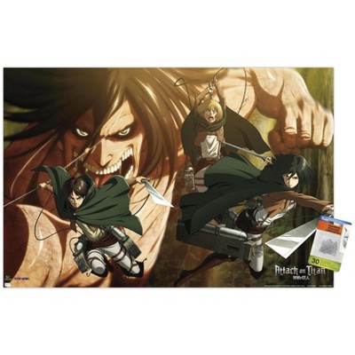 Trends International Attack on Titan: Season 3 - Key Art Unframed Wall Poster Print Clear Push Pins Bundle 22.375" x 34"