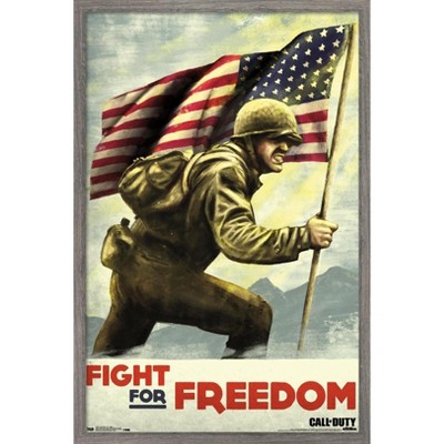 Trends International Call of Duty: WWII - Push Framed Wall Poster Prints Barnwood Framed Version 22.375" x 34"