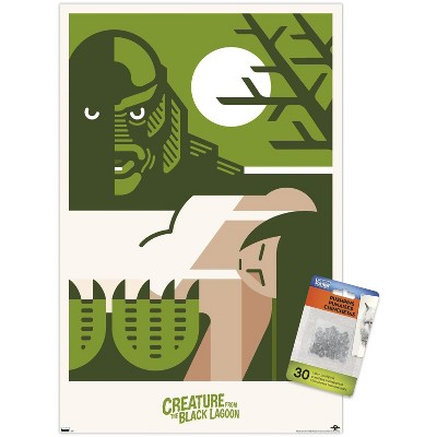 Trends International Creature From The Black Lagoon - The Legend Of The River by César Moreno Unframed Wall Poster Print Clear Push Pins Bundle