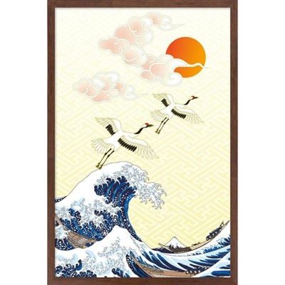 Trends International Culture Club - Japan Neon Framed Wall Poster Prints Mahogany Framed Version 22.375" x 34"
