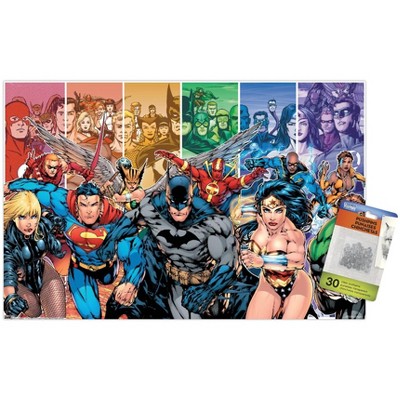 Trends International DC Comics Justice League of America - Group Unframed Wall Poster Print Clear Push Pins Bundle 22.375" x 34"