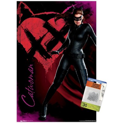 Trends International DC Comics Movie The Dark Knight Rises - Catwoman Rain Unframed Wall Poster Print Clear Push Pins Bundle 14.725" x 22.375"