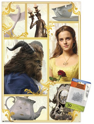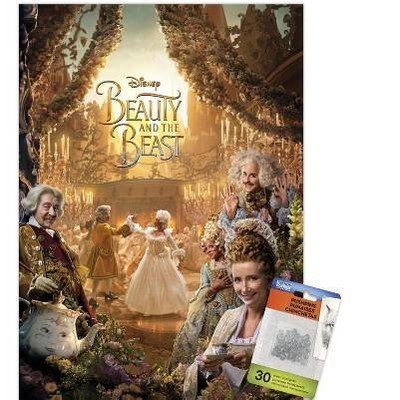 Trends International Disney Beauty and The Beast 2017 - Triptych 3 Unframed Wall Poster Print Clear Push Pins Bundle 14.725" x 22.375"