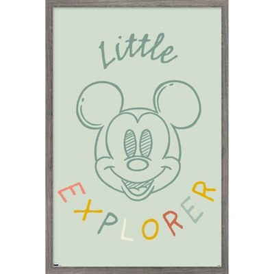 Trends International Disney Mickey Mouse - Black and White Steamboat Willie Framed Wall Poster Prints Barnwood Framed Version 14.725" x 22.375"