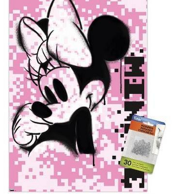 Trends International Disney Minnie Mouse - Pink Pixels Unframed Wall Poster Print Clear Push Pins Bundle 14.725" x 22.375"