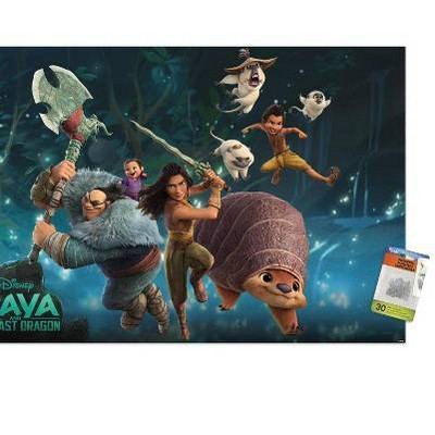 Trends International Disney Raya and the Last Dragon - Group Unframed Wall Poster Print Clear Push Pins Bundle 22.375" x 34"