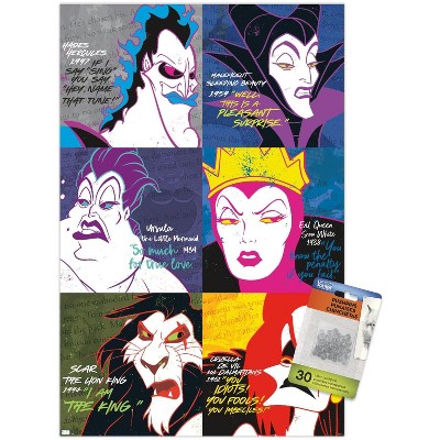 Trends International Disney Villains - Tricky Trio Unframed Wall Poster Print Clear Push Pins Bundle 14.725" x 22.375"